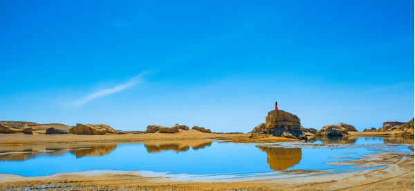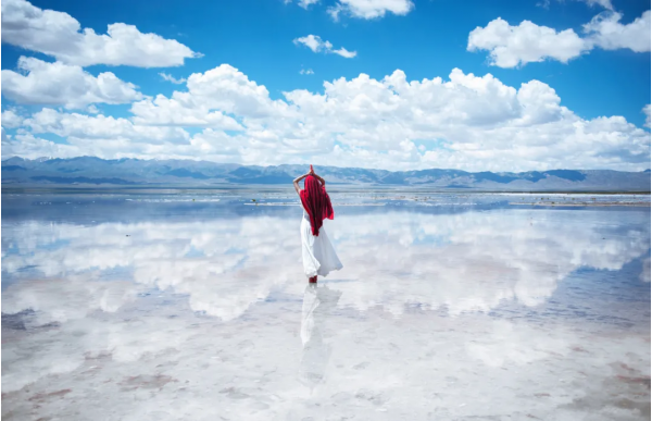 結晶之上是一層薄薄的鹵水,將天空、云朵和對岸的山都倒映在白色的湖里,非常漂亮,所以也被稱為“中國的天空之境”。可以乘坐景區內的小火車前往景區深處游玩,如果不乘坐小火車,也可以沿著鐵軌向湖深處散散步拍拍照片也是非常愜意。