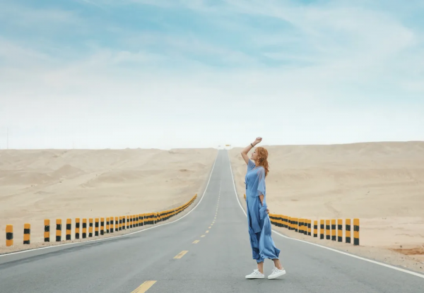 從大柴旦出發,起初還能看到城鎮的煙火氣,轉瞬便被無垠荒漠包圍。干燥的風沙撲面而來,遠處沙丘泛著金黃,與藍天相互映襯,盡顯大西北的雄渾壯闊。