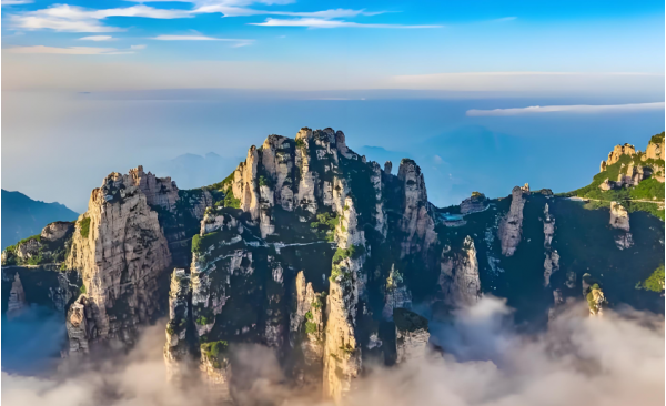 早餐后赴國家AAAAA級景區(qū)-白石山景區(qū),從東門進(jìn)入景區(qū)后上山。隨后游覽白石山國家地質(zhì)公園,它位于河北省淶源縣城南15公里,雄居八百里太行山最北端,景區(qū)面積54平方公里,最高峰云都峰海拔2096米。整個景區(qū)集黃山之奇、華山之險、張家界之秀于一身,并可用“雄”、“險”、“奇”、“幻”4個字加以概括。峰高谷深,峰林壁立,落差可達(dá)600米。戰(zhàn)國時度嶺分燕趙,遼宋時一山分兩國。白石山奇峰林立,絕壁橫陳,險壑縱布,到處直上直下如刀削斧劈,少曲線,多棱角。尤其是峰林地貌帶,高差大,密度大,是我國惟一的大理巖峰林景觀。