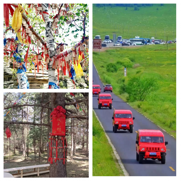 在赤峰的數(shù)日里,克旗文旅集團(tuán)所屬車隊(duì)派多臺(tái)大巴全程服務(wù),每臺(tái)車除導(dǎo)游外還至少配備一名工作人員,集團(tuán)旗下運(yùn)通旅行社幾位高管也親率工作車全程跟蹤指揮協(xié)調(diào)。車隊(duì)前往踩線第一站——樺木溝國(guó)家森林公園時(shí),指揮車特意安排在途經(jīng)的亞洲最大風(fēng)力發(fā)電基地——大光頂子風(fēng)車游樂(lè)園作短暫休憩,順便打卡留影。抵達(dá)樺木溝御景接待中心時(shí),身著蒙古族盛裝的禮儀人員為依次下車的嘉賓獻(xiàn)哈達(dá)、敬下馬酒。當(dāng)晚還隆重舉行了克什克騰旅游資源推介會(huì)和豐盛的歡迎晚宴,并穿插安排了精彩的歌舞表演。與此同時(shí),工作人員每日通過(guò)微信專群發(fā)布最新的天氣預(yù)報(bào)和行程細(xì)節(jié),及時(shí)提醒大家增減衣服和相關(guān)注意事項(xiàng)。入住木屋別墅當(dāng)晚,因氣溫驟降,擔(dān)心大家受寒,房間均配備了電熱器,每張床位還鋪設(shè)了電褥子。途經(jīng)燈籠河草原、西拉木倫河、公主湖、將軍泡子等景點(diǎn)時(shí),導(dǎo)游適時(shí)穿插講解,并不失時(shí)機(jī)地與嘉賓互動(dòng),讓大家忘記了旅途疲憊。尤為難忘的是,組織方全力協(xié)調(diào),讓車隊(duì)穿越剛修好尚未正式通車運(yùn)營(yíng)的經(jīng)烏高速自烏蘭布統(tǒng)前往達(dá)里湖,節(jié)約了 2 個(gè)小時(shí)車程,讓信馬由韁的業(yè)界同仁們真切體驗(yàn)了“VIP”的待遇。