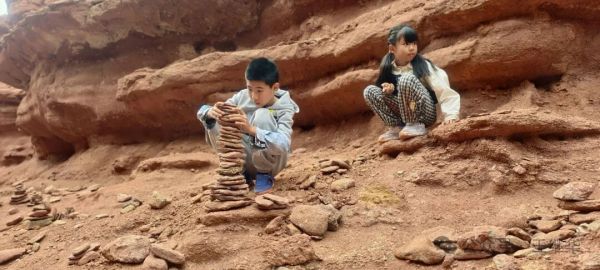指尖撫過(guò)20多米高的巖壁,能觸到風(fēng)蝕雨琢留下的粗糙質(zhì)感,仿佛觸摸著7500萬(wàn)年的時(shí)光痕跡。