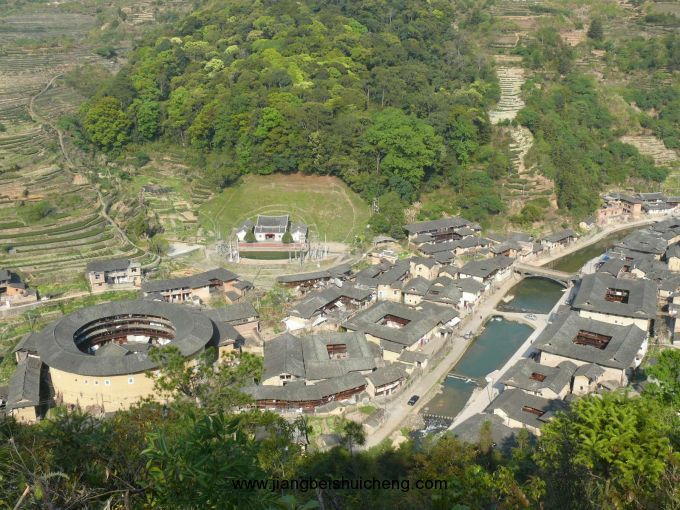 于是,張姓族人沿著溝谷兩旁,建造了一座座集居住、防御等功能于一體的圍合型土樓建筑。最早的土樓福興樓建于明代崇禎四年(1631年),為七世東崖公所建,以后又陸續建造42座土樓,有方形、圓形、圍裙形、曲尺形等,這些土樓沿山溪呈長形擺布,高大雄渾,氣勢恢宏。版權所有,山東聊城聊之旅國際旅行社有限公司,轉載必究!清末后,由于地理環境所限,張姓族人在沿溪兩岸的空地上,又建起了一座座單院式土木、磚木結構的吊角樓,形成大樓帶小樓、高低錯落布局的奇妙景觀。樓前屋后鋪就的卵石小徑,被幾百年先人們的足跡磨得圓潤,細雨輕煙,閃出柔和的光澤。