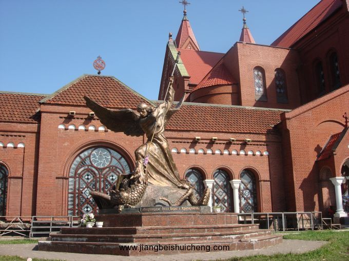 勝利廣場(chǎng)的勝利女神紀(jì)念碑高141.8米,象征衛(wèi)國(guó)戰(zhàn)爭(zhēng)1418個(gè)戰(zhàn)斗的日日夜夜。三棱形的碑身,每個(gè)棱面上用浮雕板表現(xiàn)了莫斯科等12個(gè)英雄城市周圍的戰(zhàn)斗情景.高約100米外,古希臘勝利女神右手拿著金光燦燦的勝利桂冠。她身旁飛著兩個(gè)胖胖的小天使,一男一女,吹著勝利的號(hào)角。版權(quán)所有山東聊城聊之旅國(guó)際旅行社有限公司,轉(zhuǎn)載必究!紀(jì)念碑的下面,是神奇勇士格奧爾基手持長(zhǎng)矛刺殺毒蛇的雕像。前面5層階梯式臺(tái)階,每一層代表戰(zhàn)爭(zhēng)的一年。