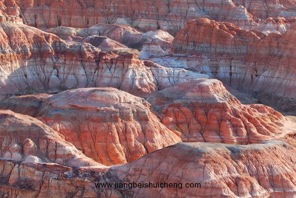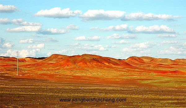 將軍戈壁上一處紅色丘陵區,由數百個大小不等的紅色山包組成,總面積大約10平方公里。山體的高度多在20—30米之間,頂部呈平滑圓弧狀,周圍坡度平緩,山包之的洼地也是一片火紅。這些紅色丘陵綿延起伏,形成非常壯觀的地文景觀。火燒山的山體由磚紅色和桔黃色的巖石構成,色彩艷麗,石質堅硬,為侏羅系地質構造。版權所有,山東聊城聊之旅國際旅行有限公司轉載必究!陽光下的火燒山真像一片火海,那些起伏的紅色山頭就像升騰的火焰,你的第一感覺就是仿佛來到了西游記里的火焰山。火燒山的巖石原為泥巖,由于地下的煤層自燃,讓其燒烤成現在的模樣,因而地質表面到處散落著被熔變的巖石。這些巖石不但質地堅硬,而且色彩鮮艷,形狀奇特,具有一定的觀賞價值。由于火燒山油田的開發,火燒山逐漸被人們所熟知,慕名而來的游客日漸增多,火燒山將成為重要的旅游勝地。