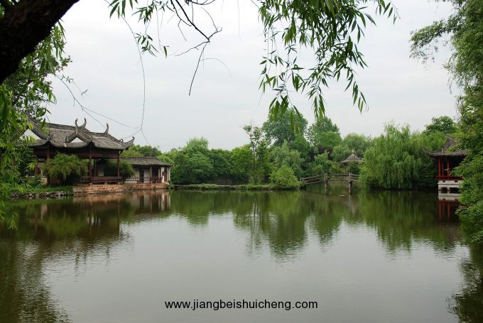 園中有“三潭印月”、“湖心亭”、“白堤”、“玉帶橋”等,所以有“小西湖”的美稱。以“玉帶橋”分外湖、內湖,形成“外西湖”、“內西湖”格局。過橋便是園內的中心“小瀛洲”(鏡亭),3塘相連,寬亙10畝,灌田60畝,把“36典”也巧妙地隱喻進去了。鏡亭是全園的中心,四面環水,結構精巧。