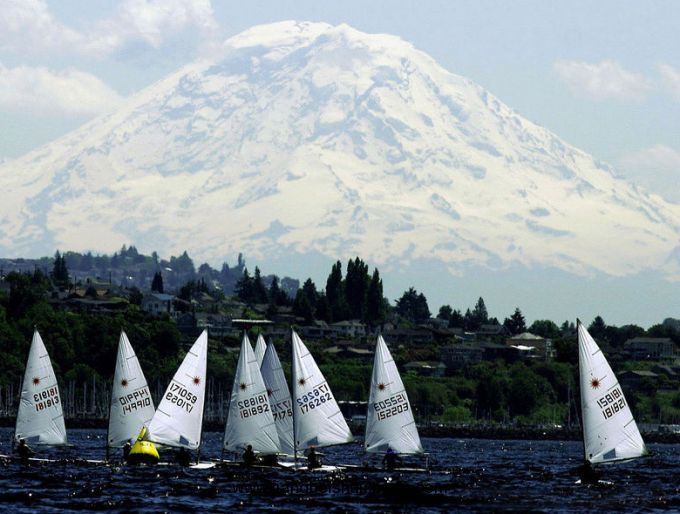 西雅圖是一個不可思議的城市。它海拔最低,卻有古老的冰川,活躍的火山和終年積雪的山峰。西雅圖又是一個得天獨(dú)厚的城市,它擁有青山、湖泊,擁有港灣河道,擁有溫潤的氣候,如春的四季。無論是在美國本土,還是在世界其他地方,幾乎找不到第二個城市能像西雅圖那樣,山巒、平地都被密密的、幾近原始的森林所覆蓋。市區(qū)內(nèi)外皆襯飾著幽靜的港灣、河流、綠樹,掩映著色彩豐富的街市。而在環(huán)繞著城市的青山之中,又錯落地隱藏著幾十個大小不等的湖泊。樹木蔥郁,草地青蔥,甚至飄來飄去的雨,輕輕掠過的風(fēng),都帶著青綠的顏色。