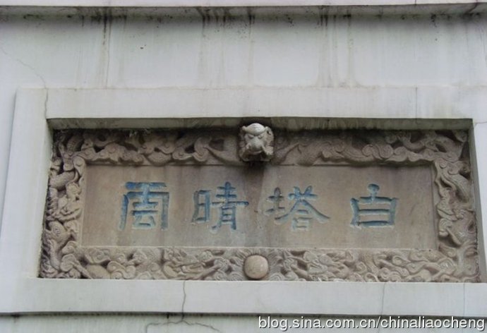 白塔晴云的門上嵌著賴少奇書的"白塔晴云"石額。