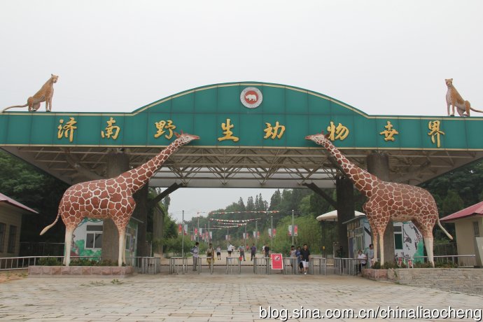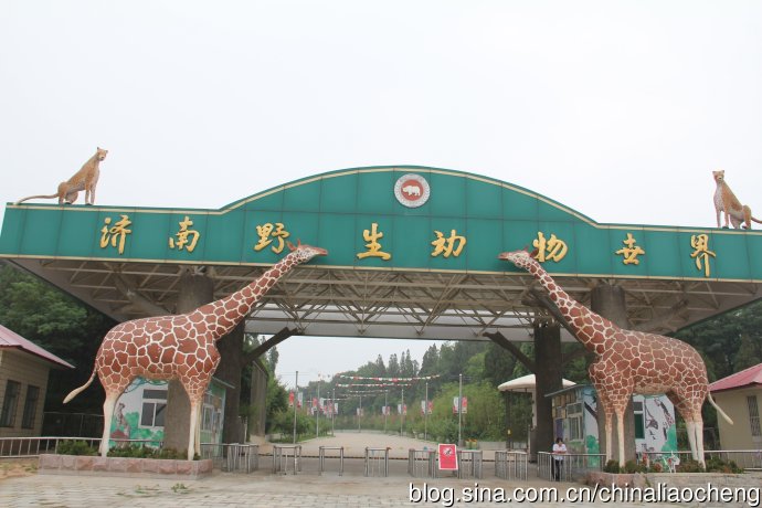 經過一路的奔波,終于到達了濟南跑馬嶺動物園的門口,看到了兩只長頸鹿和兩只獵豹正在守門。