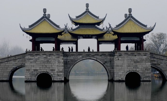 不知不覺中,我們已經進入了二十四橋景區(qū)。“二十四橋”出自唐代著名詩人杜牧的詩句“青山隱隱水迢迢,秋盡江南草未凋;二十四橋明月夜,玉人何處教吹蕭”。