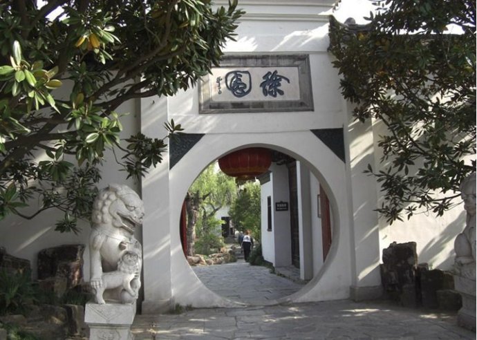 長堤的盡頭便是“徐園”徐園中有一館、一榭、一亭,外有曲水,內有池塘,花木竹石,恰到好處,充分體現(xiàn)了江南園林的精巧雅致。