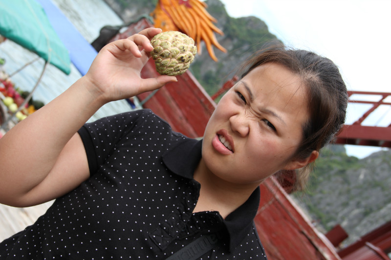 賣水果的小船,雖然船不大,但商品琳瑯滿目