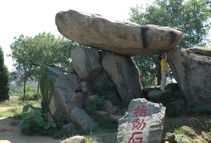 指動石旅游風景區依山傍水,山間巨石林立,其間最著名的便是那塊一指可動的百噸奇石了,它長7米,寬5米,重達百噸,而如此龐然大物,卻可憑游人一指之力,上下顫動。面對如此奇觀,攝影家們也紛紛走上前去,感受百噸巨石在自己的手指下微微顫動的奇妙感覺。指動石還有另一奇特之處,那便是在它的底部有一幅中國地圖,大西北、東三省、寶島臺灣都歷歷在目,于是指動石便有了另一個豪邁的名字——“指點江山”。
