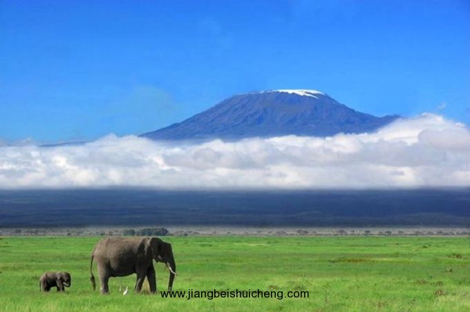 乞力馬扎羅山是坦桑尼亞的象征,山高19344英尺,是非洲最高的山峰,也是世界上適合步行的最高山峰。其底部的直徑長達40英里,峰頂的火山口被冰川覆蓋,蔚為壯觀。各國游客可到肯尼亞境內眺望此山,卻必須進入坦桑尼亞才可攀登。