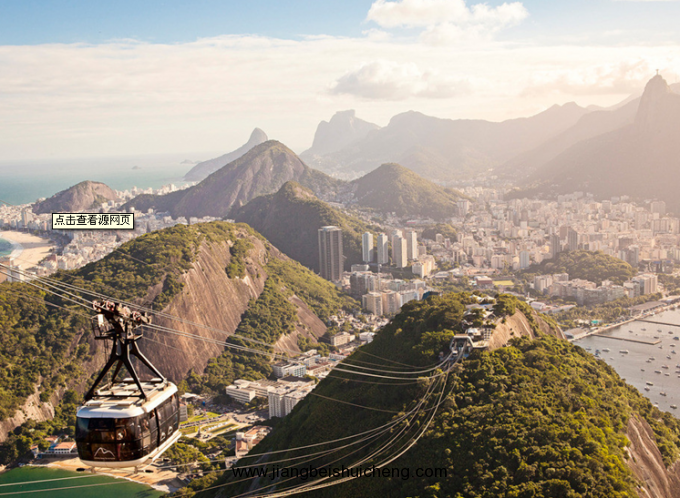 乘坐纜車登上面包山,憑欄遠眺,里約市容一覽無遺:這一邊是瓜納巴拉海灣,白色的游艇和帆船星散點落地停泊在蔚藍色的水面上。半圓弧狀的博塔福戈海灘金沙細浪,海濱大道旁是層層疊疊、錯落有致的高樓大廈。