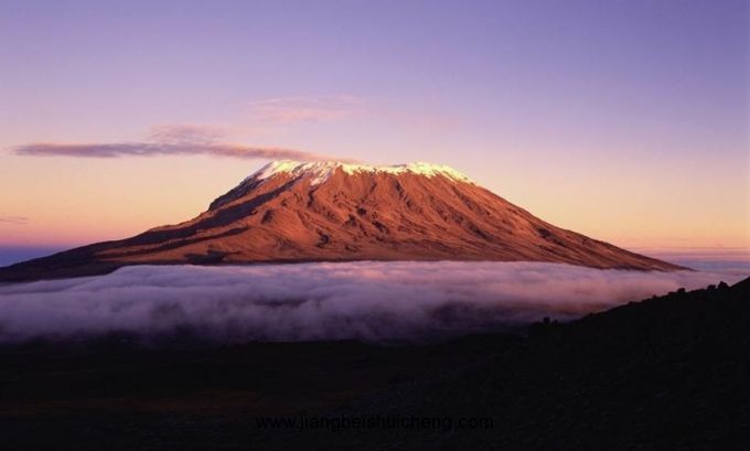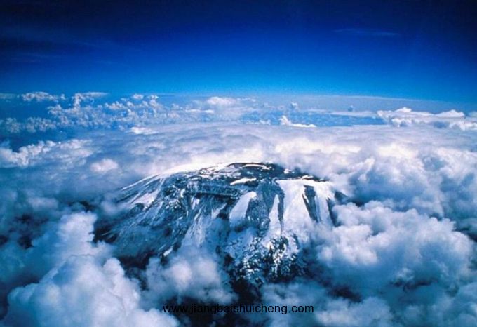 被譽(yù)為“赤道雪峰”乞力馬扎羅山位于赤道附近的坦桑尼亞東北部。在赤道附近“冒”出這一晶瑩的冰雪世界,世人稱奇。酷熱的日子里,從很遠(yuǎn)處望去,藍(lán)色的山基賞心悅目,而白雪皚皚的山頂似乎在空中盤旋。常伸展到雪線以下飄渺的云霧,增加了這種幻覺。山麓的氣溫有時高達(dá)59℃,而峰頂?shù)臍鉁赜殖T诹阆?4℃,故有“赤道雪峰”之稱。在過去的幾個世紀(jì)里,乞力馬扎羅山一直是一座神秘而迷人的山——沒有人真的相信在赤道附近居然有這樣一座覆蓋著白雪的山。