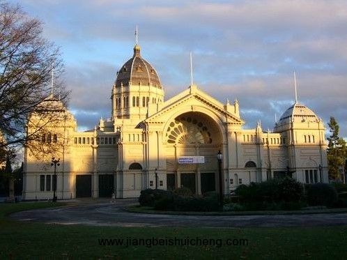 墨爾本皇家展覽館于1880年建成,建筑古色古香、美輪美奐,是1880-1881年舉辦萬國博覽會的會場,當初設計和建造的目的之一就是要把展覽館和墨爾本「在世界地圖上成名」,建筑糅合了拜占庭建筑、古羅馬建筑、和意大利文藝復興建筑的風格,當年在為期八個月的時間內就接待了130萬名參觀萬國博覽會的訪客。在1888年慶祝移民定居澳大利亞一百周年所舉辦的博覽會期間,接待訪客的人數更達到220萬人。在一百多年前,這都是了不起的盛事。2004年六月,墨爾本皇家展覽館被列入聯合國世界文化遺產名錄,是澳大利亞至今唯一被列入該名錄的建筑物。更不容易的是,該建筑物現在仍被使用作展覽場地,但出于文物保護的原因,現在的使用頻率已經大大降低。