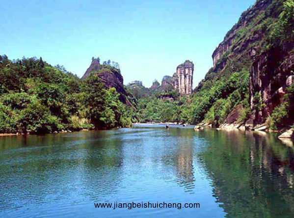 大藏峰在四曲,奇峰危立水際,陡峭千尋。峰下為潭,深不可測,名曰“臥龍?zhí)丁薄7灏肴僳E難及之處則有枯楂斜置于洞穴之中,用圓木刳成如小船形,為三、四千年前武夷山先民的葬具,被稱為“船棺”。古代山民們是怎樣把這船棺放置進(jìn)那高高的洞穴之中,則成為千古之謎。有的洞中則塞滿干草,民間傳說有金雞巢于洞中,故又名金雞洞。旁有御茶園、題詩巖、小九曲諸勝。大藏峰位于四曲的東面,這是一座巨大的巖峰,陡峭千仞,橫亙數(shù)百丈。山巔聳拔如檐,巖溜皆滴落水中,叮叮鳴鳴地敲擊著水面,恍如鳴奏著悅耳動聽的琴音。舟過其下,令人有“甘午吹陰風(fēng),晝氣黯若夕”之感,人語倬聲,空壁回聲,饒有趣味。“半巖欲墜潭渚深,晝陽不到午陰陰。洞荒一曲瑤里斷,萬壑干峰云水沉。”大藏峰下是深不可測的臥龍?zhí)叮P(guān)于這個深潭的來歷,版權(quán)所有山東聊城聊之旅國際旅行社有限公司,轉(zhuǎn)載必究!有一段令人驚心動魄的傳說;相傳在很早以前,這潭里潛伏著一條惡龍,它時常帶領(lǐng)著九條小龍張牙舞爪,追逐嬉戲,攪得天昏地暗,溪水泛濫。有一天,一位仙人路經(jīng)此地,正見惡龍作怪,便拔出寶劍來,將八條惡龍斬死在潭中,唯有一條小龍搖尾藝憐,哀哀求告,愿意改邪歸正,仙人便留下了它,命它在此護(hù)佑武夷山。大藏峰半壁,有兩個洞穴,一上一下,相去不甚遠(yuǎn)。上為雞巖,洞內(nèi)有一團(tuán)稻草,不如何時擱此.至今仍不腐不朽;下為金雞洞,內(nèi)小外大,洞口有虹橋板,洞內(nèi)藏有幾具船棺。據(jù)史籍記載,峰頂有超真亭、仙史館、均已廢。大藏峰后有鳴鶴峰,上有凝真洞......