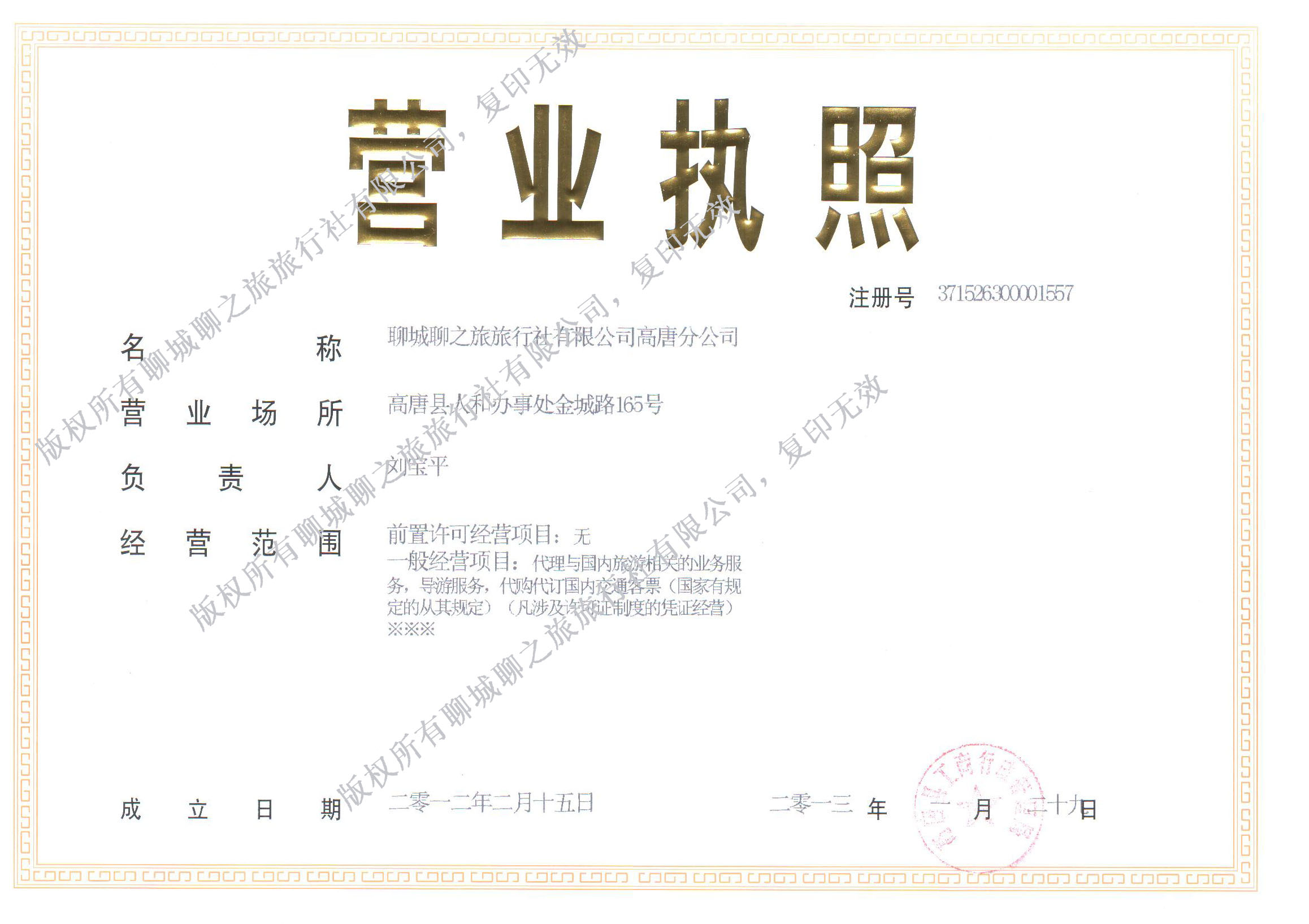 聊城聊之旅旅行社有限公司高唐分公司
