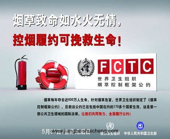 自20世紀50年代以來,全球范圍內已有大量流行病學研究證實,吸煙是導致肺癌的首要危險因素。為了引起國際社會對煙草危害人類健康的重視,世界衛生組織1987年11月建議將每年的4月7日定為“世界無煙日(World No-Tobacco Day)”,并于1988年開始執行。自1989年起,世界無煙日改為每年的5月31日。2013年5月31日是第26個世界無煙日,主題是“全面禁止煙草廣告、促銷和贊助。”