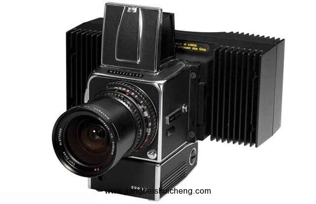 圖中這臺安置在一臺 Hasselblad 500EL 相機上??膳臄z黑白照片,或者通過鏡頭前固定的機械化過濾器轉輪分別用紅、綠、藍色三片濾鏡曝光后再合成一幅全彩照片。