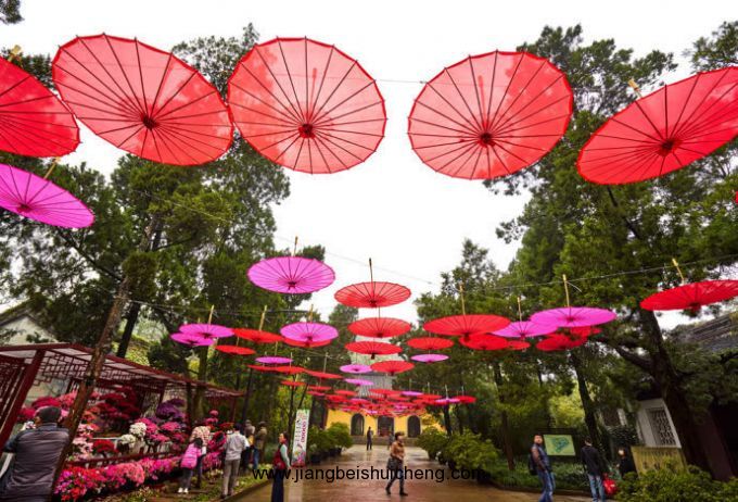 蒙蒙春雨中,火紅的雨傘,惠山寺的灰瓦,還有屋頂雕刻的風調雨順的“雨”字,構成了一幅江南春雨圖,感覺挺有意思,雨,還在下,這這個充滿詩意的江南春雨季,深深的留在了我的江南記憶里。