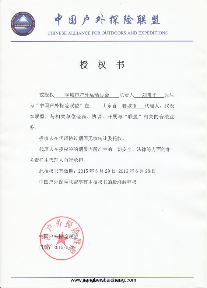 劉寶平先生成為“中國戶外探險聯盟”聊城市代理人!
