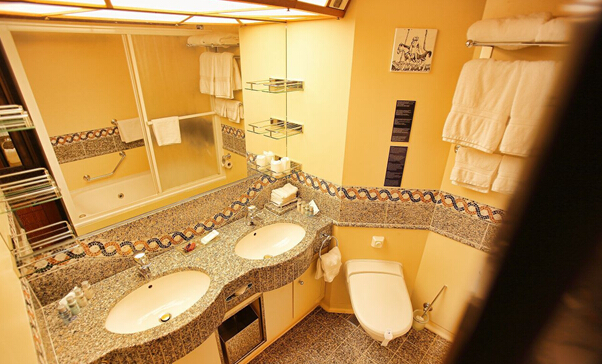 2、所有客艙均包括帶淋浴和衛生間的私人盥洗室,并裝有空調、衛星電視、電話、小冰箱、保險柜、吹風機和音樂播放設施。您客艙的服務員的姓名顯示在您客艙卡片上。客艙內定時提供及更換被褥和毛巾等織物。盥洗室提供香皂和沐浴露。出于環保考慮和為限制塑料制品的使用,如有需要,請向客艙服務員索取免費贈送的浴帽和瓶裝滋潤霜。