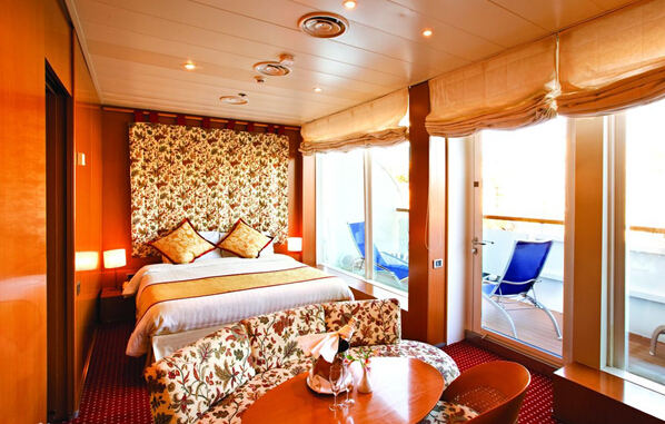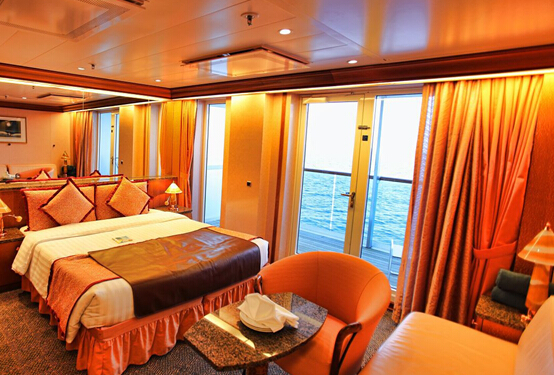 3、船上有一定數量的單人客艙,其價格扣除了一部分關稅。在某些船上有一定數量的雙人客艙,如支付差額,可用于單人。您在預定時,請核對可用性與價格。套房特惠除與所有客艙享有相同的服務和特色外,迷你套房和套房中的游客還享有如下特別優惠:優先登船-仆役服務-每天供應新鮮水果-套房內享用午餐和晚餐(應要求)-極可意浴缸-浴衣和拖鞋-應邀參加船長的高級雞尾酒會-可在點菜餐廳優先預訂席位-可由仆役服務預約觀光活動(命運女神號與維多利亞號上的迷你套房僅有淋浴)。