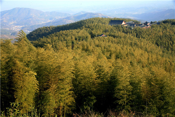 在固始西九華山風景區,隨處可見漫山遍野的竹林,郁郁蔥蔥、婷婷而舞。九華山的竹子品種多、面積大,有毛竹、桂竹、圓竹、楠竹等20多個品種。上萬畝竹園,從山腳、山腰到山頂,到處都是竹子,高低參差,隨意點染。站在竹林中,呼吸著新鮮的空氣,聆聽著小鳥的歌唱,山風吹起,竹海翻著翠浪,令人心曠神怡,美不勝收。