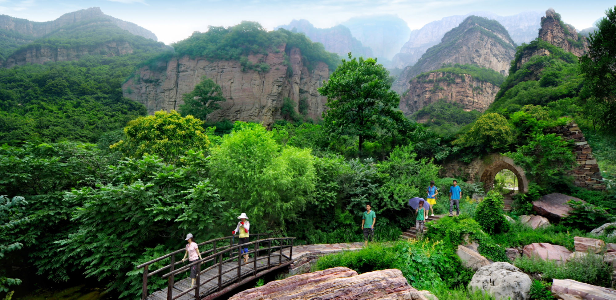 桃源谷也叫磊瀑溝。這是一道約三公里長的風景線,這道山谷兩旁山峰壁立,林木蒼翠,溪流如玉,綠潭如絨,十步一瀑,五步一潭,令你目不暇接。