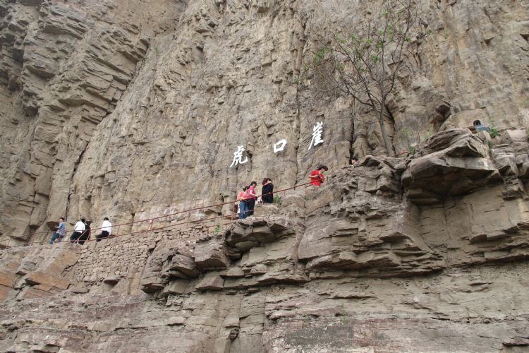 三峽闕,兩巨石在峽谷中高聳二十余米,水從巨石兩旁及中間流出,如三條銀練,噴珠濺玉,人稱三峽闕。