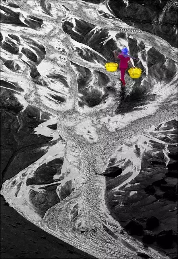 四、盡管拍攝霞浦灘涂各個(gè)焦段的鏡頭都能用上,但是拍得好的必然是擅于運(yùn)用長(zhǎng)焦鏡頭的人,灘涂變化的復(fù)雜性決定了只有長(zhǎng)鏡頭才能有可能在這一小片灘涂上做出一大篇“文章”來。