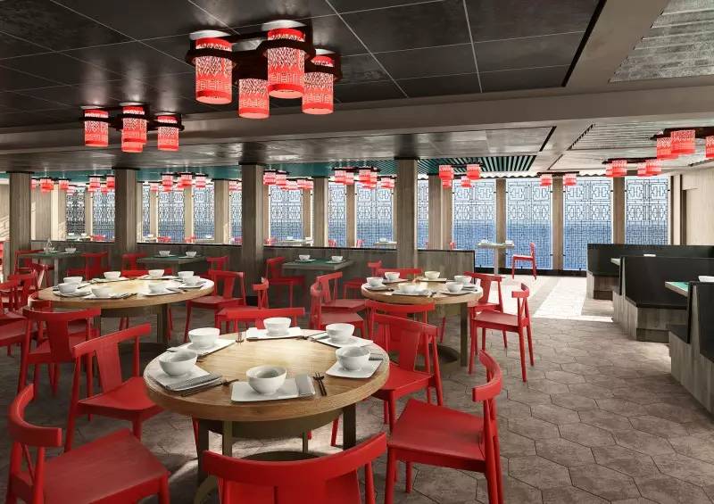 28家風(fēng)味各異的餐廳及酒吧,專為中國市場打造,獨(dú)家特色包括中餐廳、鐵板燒、中式茶室。