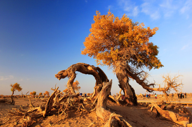后集合前往【額濟納旗胡楊林核心景區】,(游覽約6小時)自由游覽,最為精彩的觀景地為二道橋倒影林和四道橋英雄林。