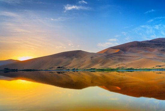 游覽八道橋沙漠,是我國第三大沙漠巴丹吉林沙漠的北緣部分,是胡楊林與沙漠景觀的結合部。這里是拍攝沙漠日出、日落的絕佳地點,是額濟納政府指定的露營所在地,也是不用深入沙漠就能體驗到沙漠、綠洲風情的地方。