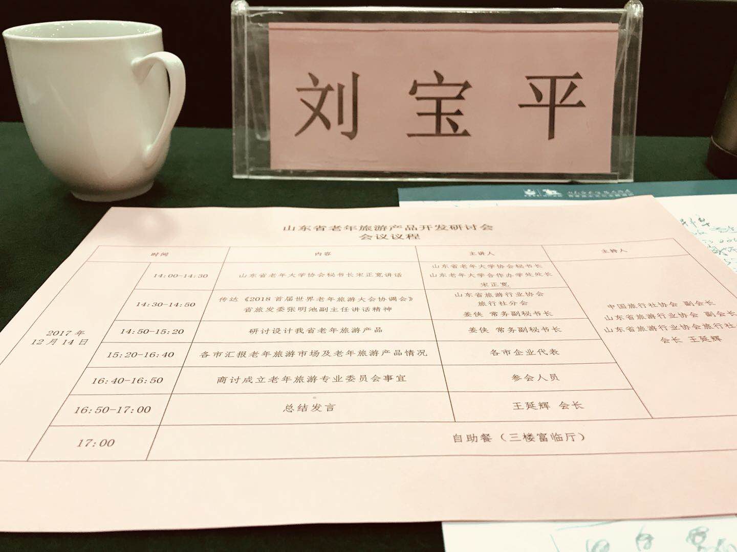 12月14日,劉寶平受邀參加山東省旅游行業協會旅行社分會主辦的山東省老年旅游產品開發研討會,并就切實服務好老年人旅游提供建設性意見。
