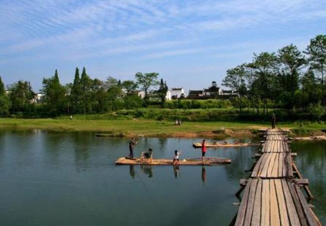 【“田園牧歌”式的地方、《閃閃紅星》拍攝地——樟村】婺源的樟村不是一個很大的景點,但是這里卻是攝影者愛好的天堂,它的精髓就是這里有一片幽靜的河面,河邊有一片靜靜的草地,最吸引人的地方就是在這優雅的環境里,有一座婺源最長的木板橋。它吸引了無數的游人前來攝影寫生,靜靜地坐在河邊發呆。