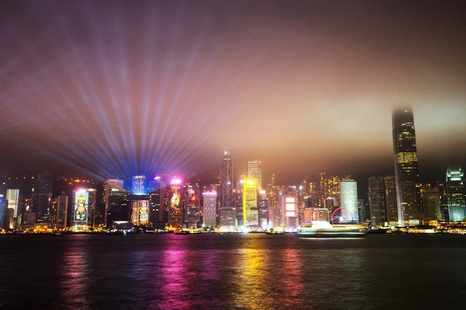 尖沙咀的夜晚,必打卡的夜景。這是還沒開始“幻彩詠香江”前正常的中環大樓們。
