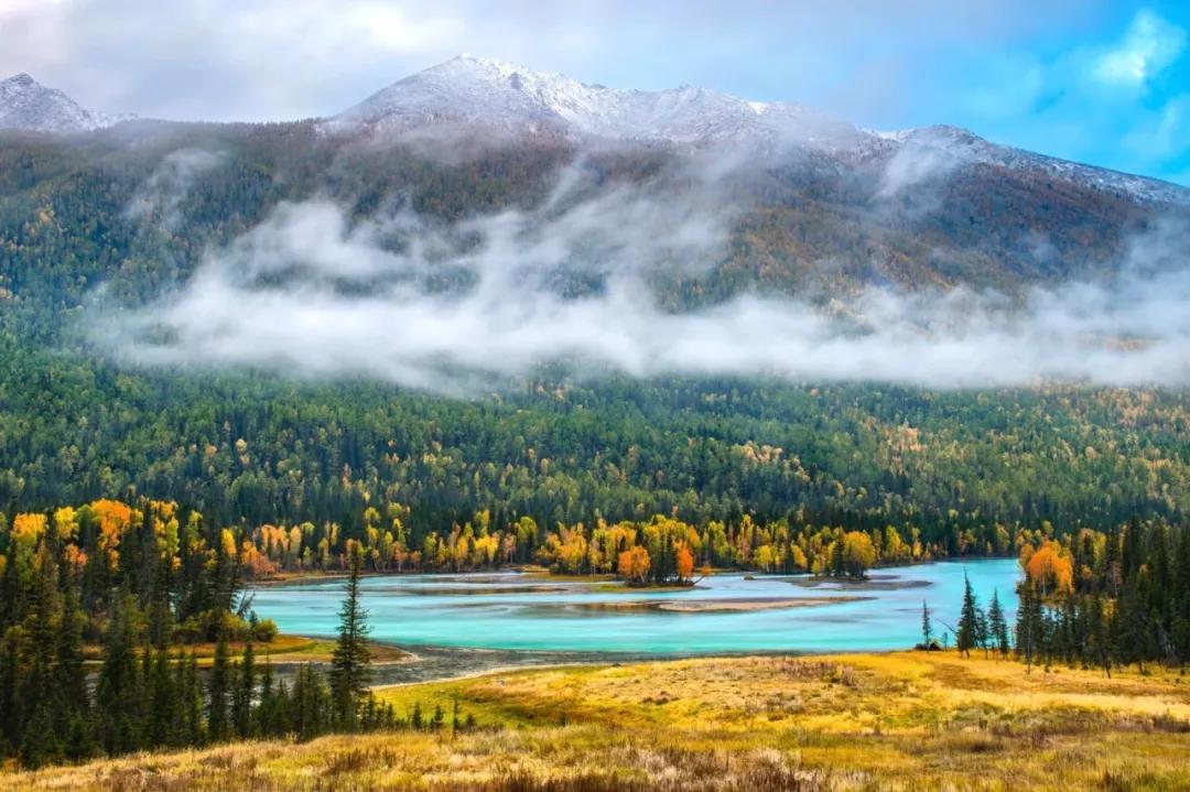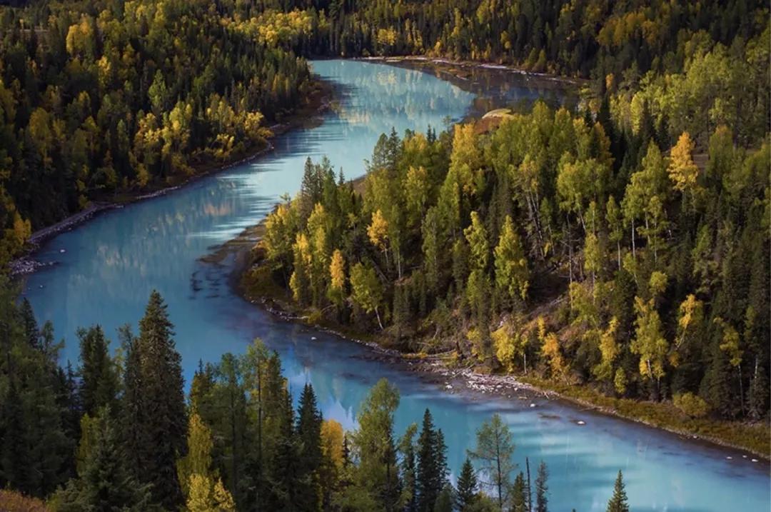 在喀納斯,各式湖泊絕對是必訪景點,湖底高低差加上光線的影響,總能給你意料之外的驚喜。而其中憑借地貌而走紅的當屬月亮灣,每到秋冬季節這兒擠滿了前來拍照的人。