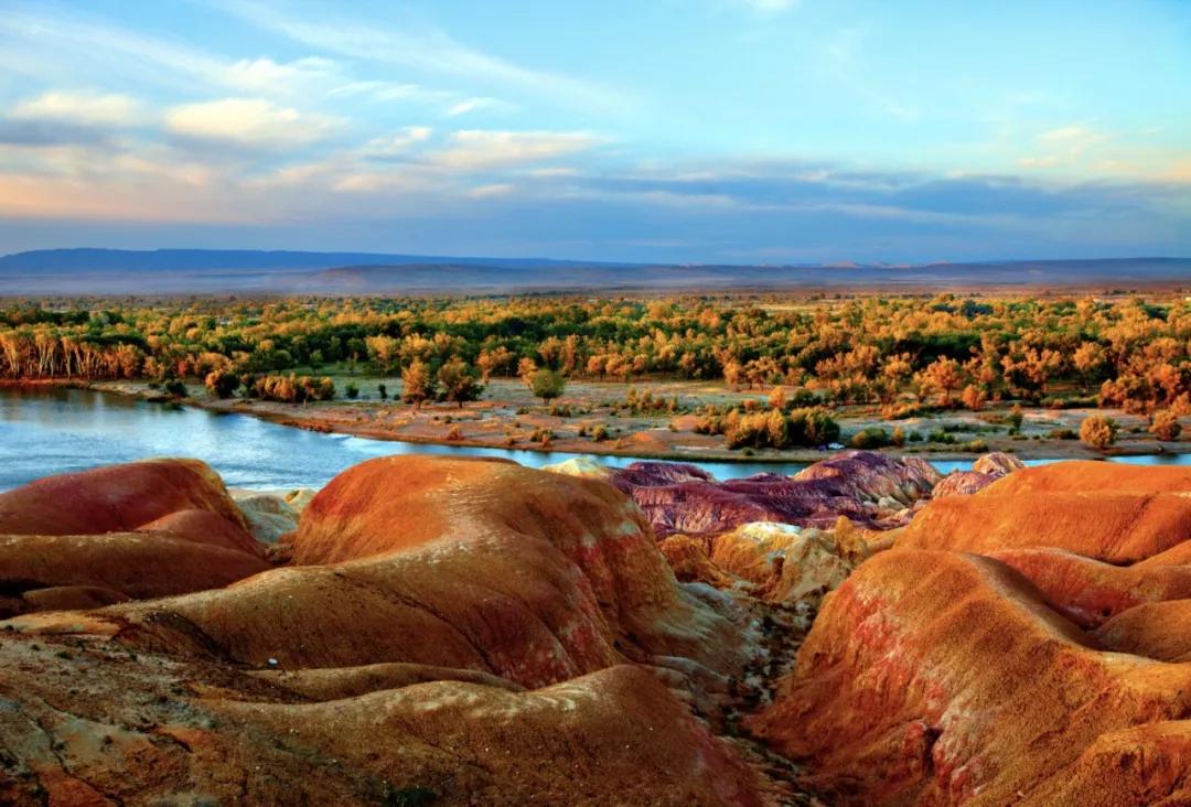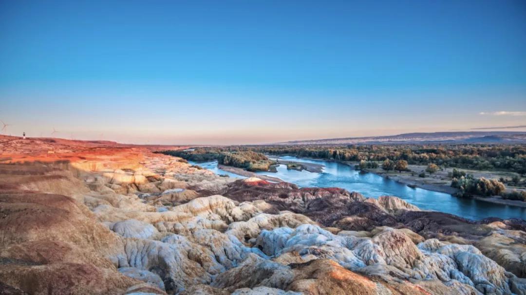 許多去過新疆的朋友應該對它的夕陽有著極深的印象,晚上七八點太陽才下山實在太常見了。在阿勒泰,夕陽有一個絕佳的“落日伴侶”,那就是五彩灘。