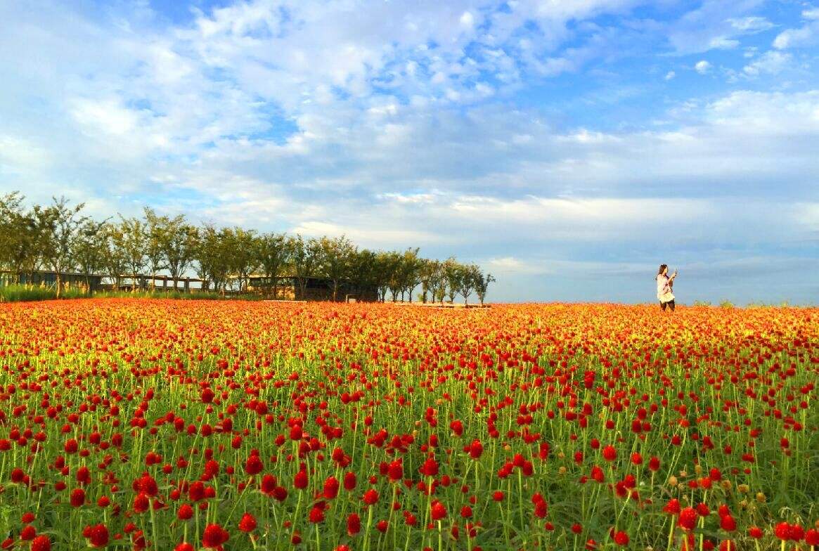 【衲田花海】景區(qū)內(nèi)的“衲田花海”,總面積2220畝,由612塊花田 “縫補(bǔ)”拼接而成,融合了北方旱梯田的雄渾和南方水梯田的俊秀,與僧人袈裟異曲同工,又兼具納祥聚福之意,樸質(zhì)卻熠熠生輝。這里栽植著50多種花卉,自南向北形成黃、紅、紫三大色區(qū),呈現(xiàn)出海納百川之態(tài)、兼容并蓄之美。站在全長(zhǎng)2.3公里的彩虹橋俯瞰花海,聽(tīng)花開(kāi)花落,嗅濃郁芬芳,感受濃濃的原鄉(xiāng)情懷。