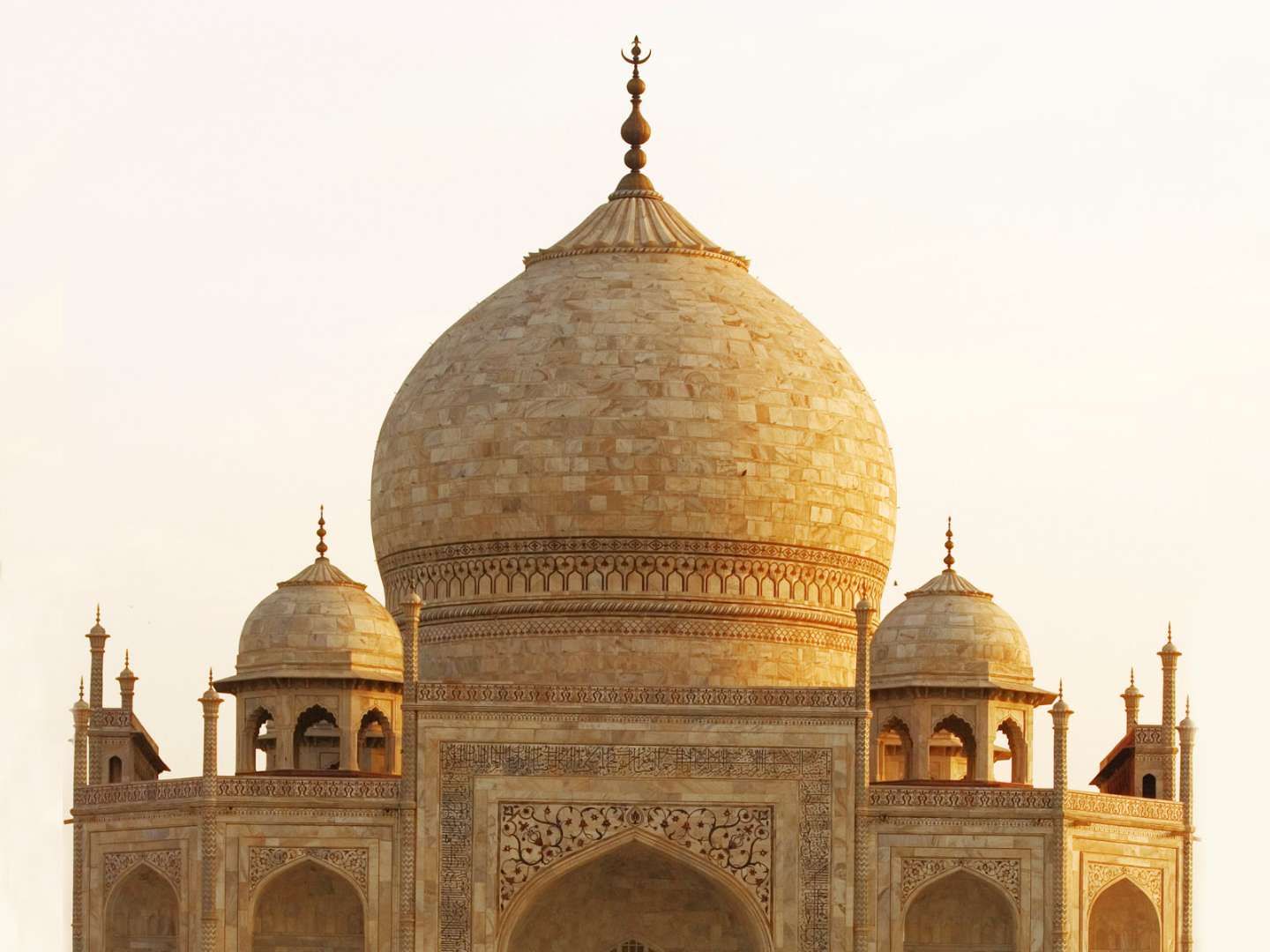 早餐后參觀舉世聞名的泰姬陵。泰姬陵全稱為“泰姬·瑪哈拉”,是一座白色大理石建成的巨大陵墓清真寺,是莫臥兒皇帝沙賈汗為紀念他心愛的妃子于 1631 年至 1653 年在阿格拉而建,由殿堂、鐘樓、尖塔、水池等構成,全部用純白色大理石建筑,用玻璃、瑪瑙鑲嵌,具有極高的藝術價值,它是印度知名度最高的古跡之一,世界文化遺產,被評選為“世界新七大奇跡”,每天吸引著全世界慕名而來的游客;