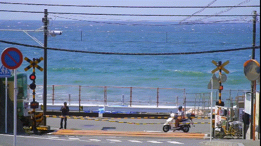 從藤澤站開出后,江之電時而緊貼著民居行駛,連別人家院子里植了什么盆栽都能看得清清楚楚;有時會突然轉(zhuǎn)向晃人一個趔趄后拐進商店街在地面上悠然行進;時而也會停下等待對向來車通過后再緩緩開動。下一個轉(zhuǎn)彎后兩旁的建筑如潮水退去,波光粼粼的湘南海岸不斷靠近,宛如戀人般主動將你輕擁入懷中……