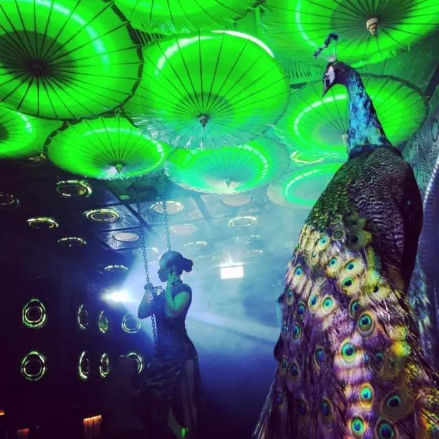 穿過一間鳥舍就來到奇幻的 Ophelia。以孔雀和鴉片館為靈感,奢靡,優雅,震撼都不足以形容這里的東方風情。中式的庭院,鐵鑄的玄關、孔雀羽毛制的壁燈和翠綠的天鵝絨沙發,設計師仿佛在用搭建電影場景的方式設計酒吧。