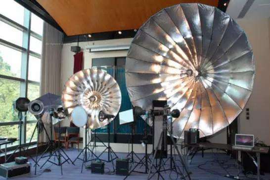 B2PRO和LIGHTSTAR首次推出的產(chǎn)品,燈具表面材料和照射光源發(fā)生反應(yīng),用成千上萬個(gè)銀色反光照亮人物光源。根據(jù)不用傘面的大小,均有不同的柔、硬反光材料可供選擇。
