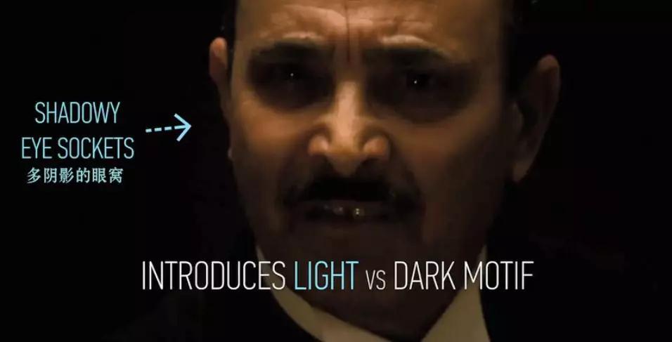 在柯里昂家族的陰影世界中,光亮與黑暗的強烈沖突具象化了每個人內心善良與邪惡的斗爭。(LIGHT VS DARK = GOOD VS EVIL)