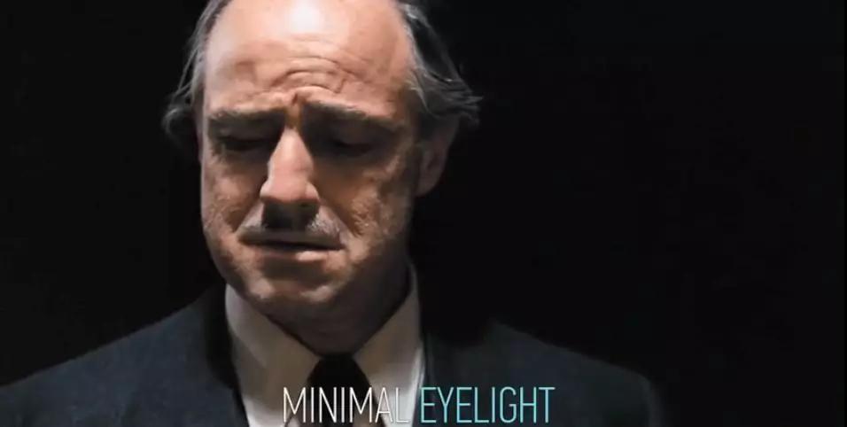 出于對白蘭度特效妝容的強調,威利斯從他的上方打光,經常提供最小程度的眼部打光(Eyelight)。