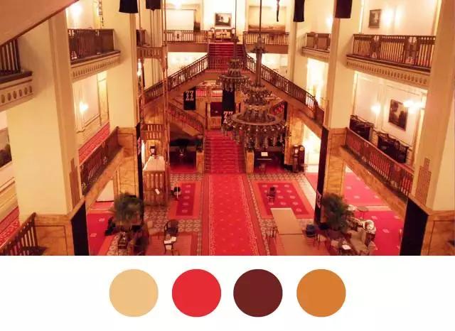 而大飯店大廳的營造,則更是夢幻。老歐洲的氛圍:咖啡色、洋紅、紅金、黃金,無論是裝修歐陸酒店還是懷舊咖啡館都可以參照這個。