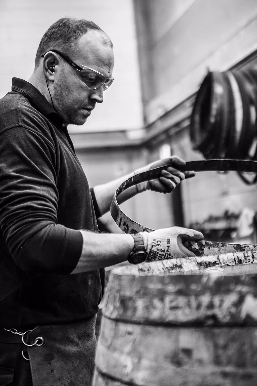 終于到了最關鍵的一步:液體進入橡木酒桶中開始陳年。要知道,橡木桶在威士忌風味的影響中至少占了6成。參觀Cambus制桶廠,成了這趟威士忌之旅中必不可少的一部分。