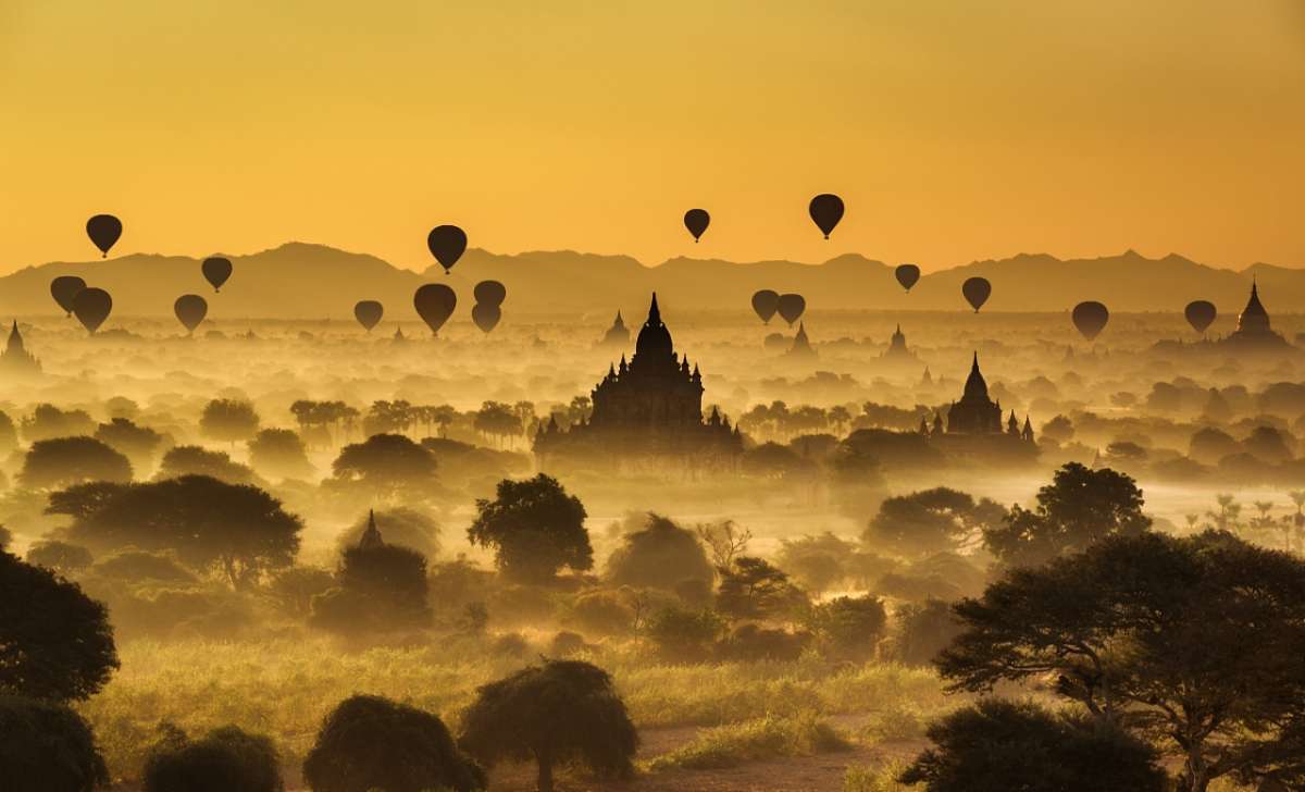 清晨5點(diǎn)左右【蒲甘上塔看日出】(約60分鐘,此屬于贈(zèng)送項(xiàng)目,如遇天氣原因無法觀看,費(fèi)用不退)感受一座歷盡滄桑的古城迎風(fēng)而立,歷史變遷和自然災(zāi)害已使它的昔日輝煌不再,但那2000多座大大小小見證著歷史的佛塔依舊在晨曦和日落的沐浴下,閃耀著金色的光滿的古城——蒲甘;